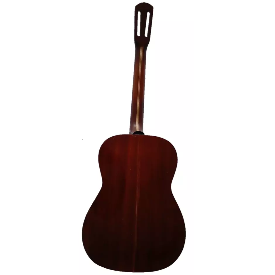 Featuring a parlour style guitar body with a natural wood finish,18 frets on a rosewood finger board and a right-handed 6-string configuration. It would actually be a fairly simple task to convert this guitar to a left handed model if required.
