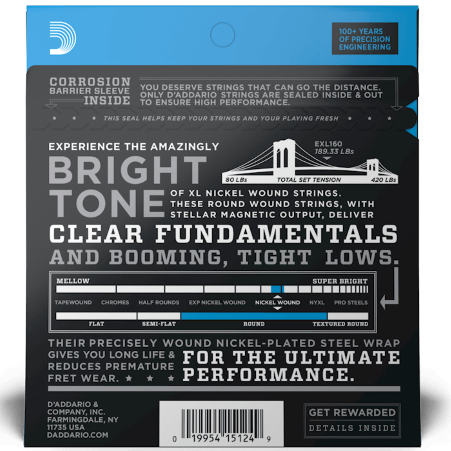 - XL Nickel bass guitar strings are made in the USA—drawn to exacting specifications at D'Addario's New York production facility.