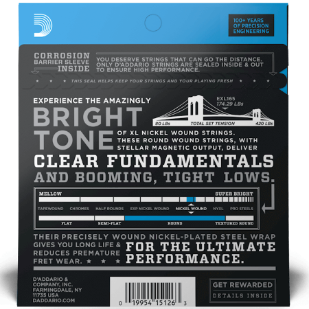- XL Nickel bass guitar strings are made in the USA—drawn to exacting specifications at D'Addario's New York production facility.