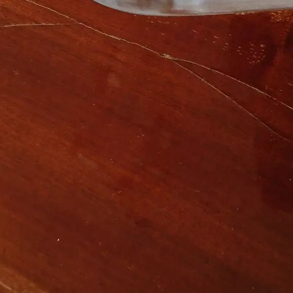 Featuring a parlour style guitar body with a natural wood finish,18 frets on a rosewood finger board and a right-handed 6-string configuration. It would actually be a fairly simple task to convert this guitar to a left handed model if required.