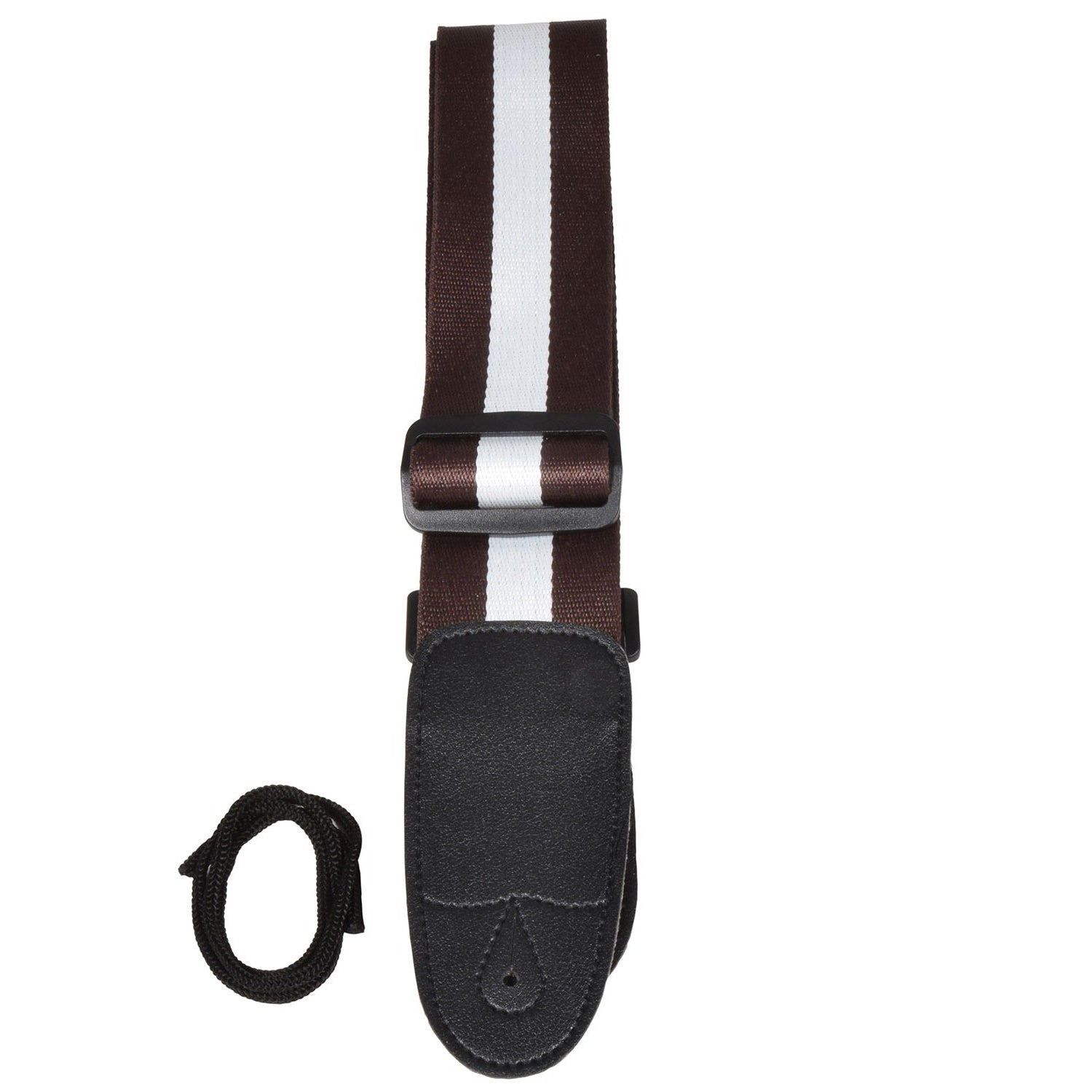 Guitar or bass guitar strap constructed from adjustable nylon webbing material and PU leather fobs for reliable attachment to strap buttons.