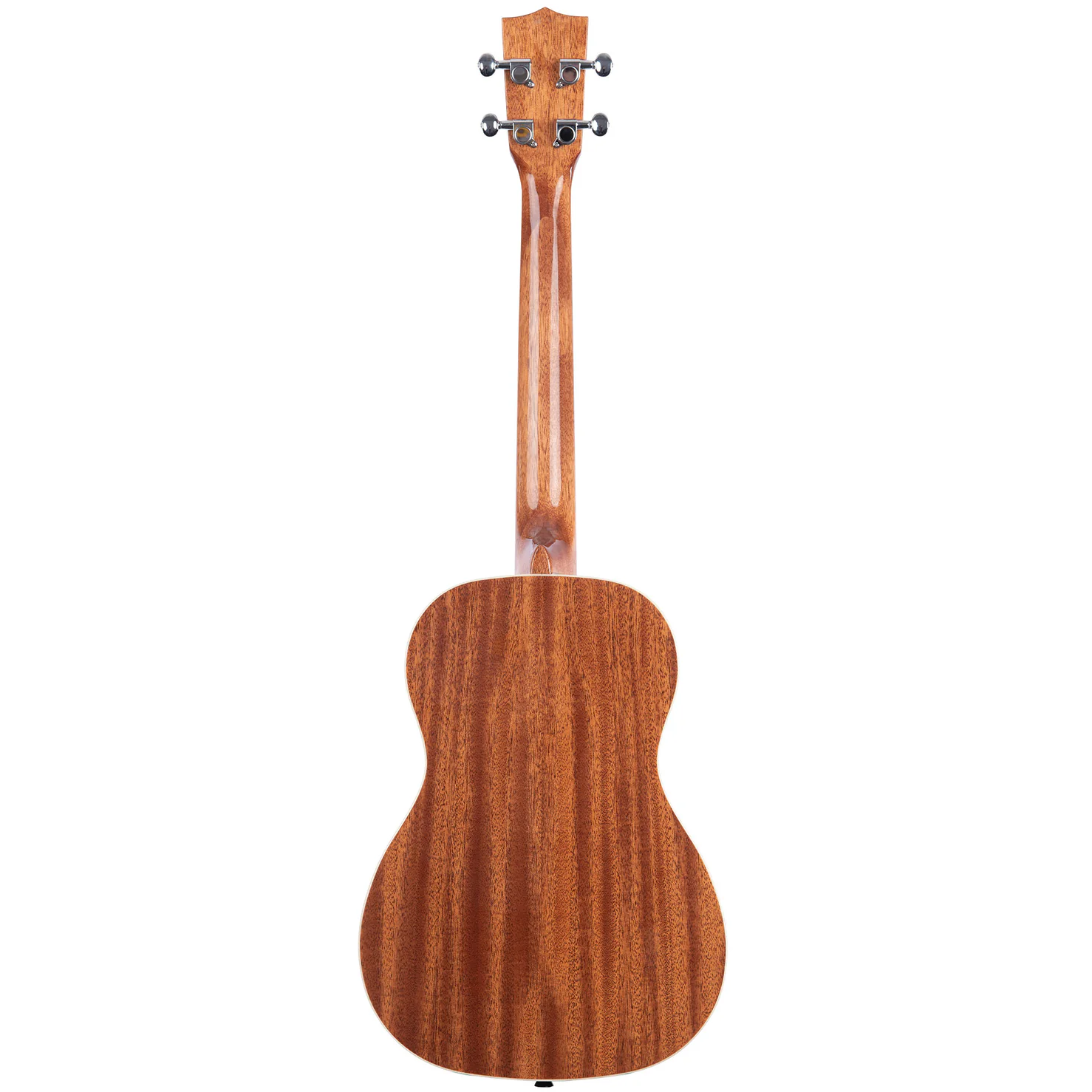 This Gloss Mahogany Baritone Okulele features a high-gloss finish to enhance the simple elegance of the Mahogany woodgrain. The gloss adds a smoothness and sturdiness to the uke and a cream binding ties it all together.