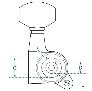 A full set of six in a line machine tuning heads finished in black, featuring die cast construction and low gearing with a 19:1 ratio.