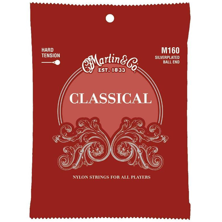 Martin M160 classical guitar string set, featuring silver plated windings and ball ends for, east installation.