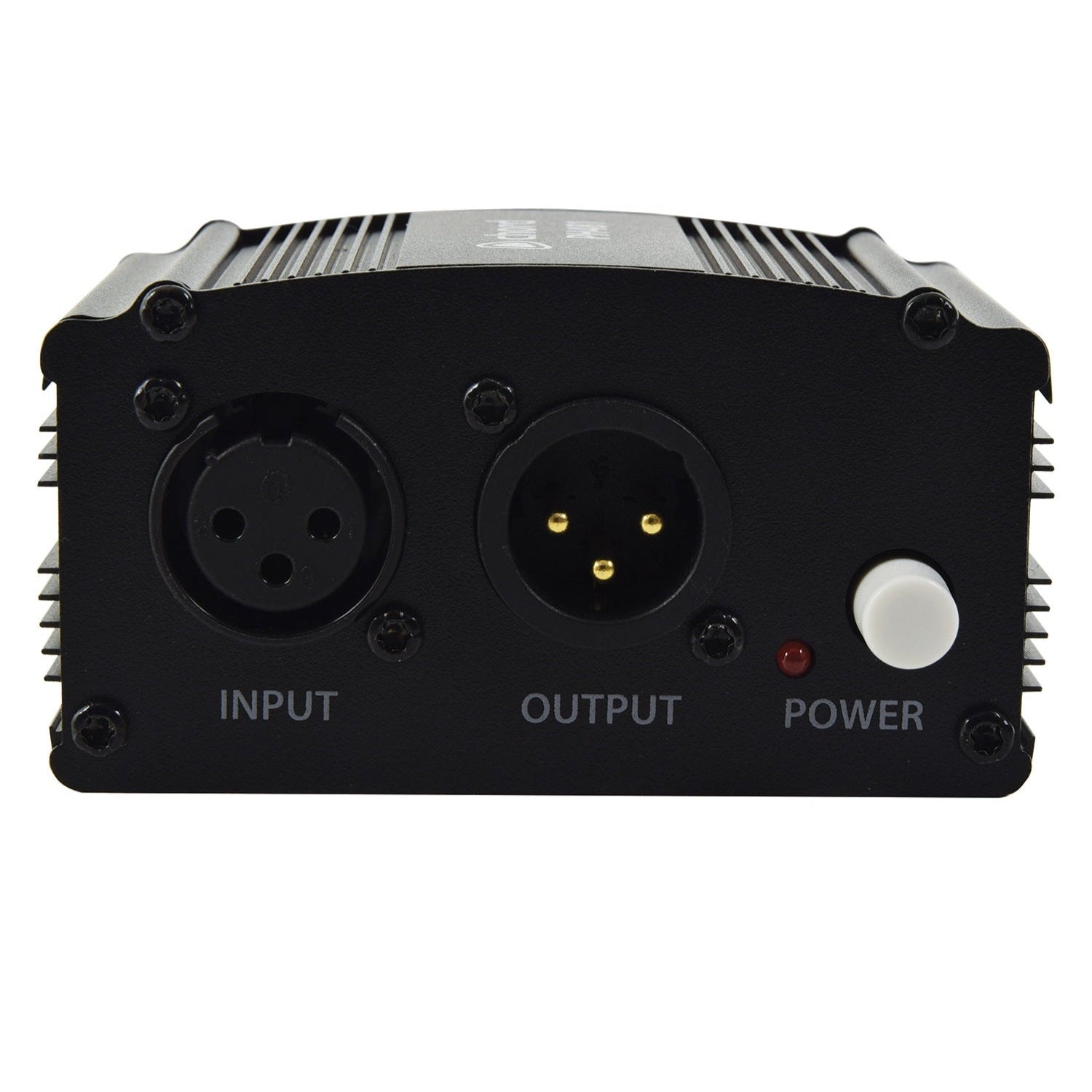 A standalone phantom power unit supplying the +48 V needed to power your condenser / electret microphone without the need for internal batteries.