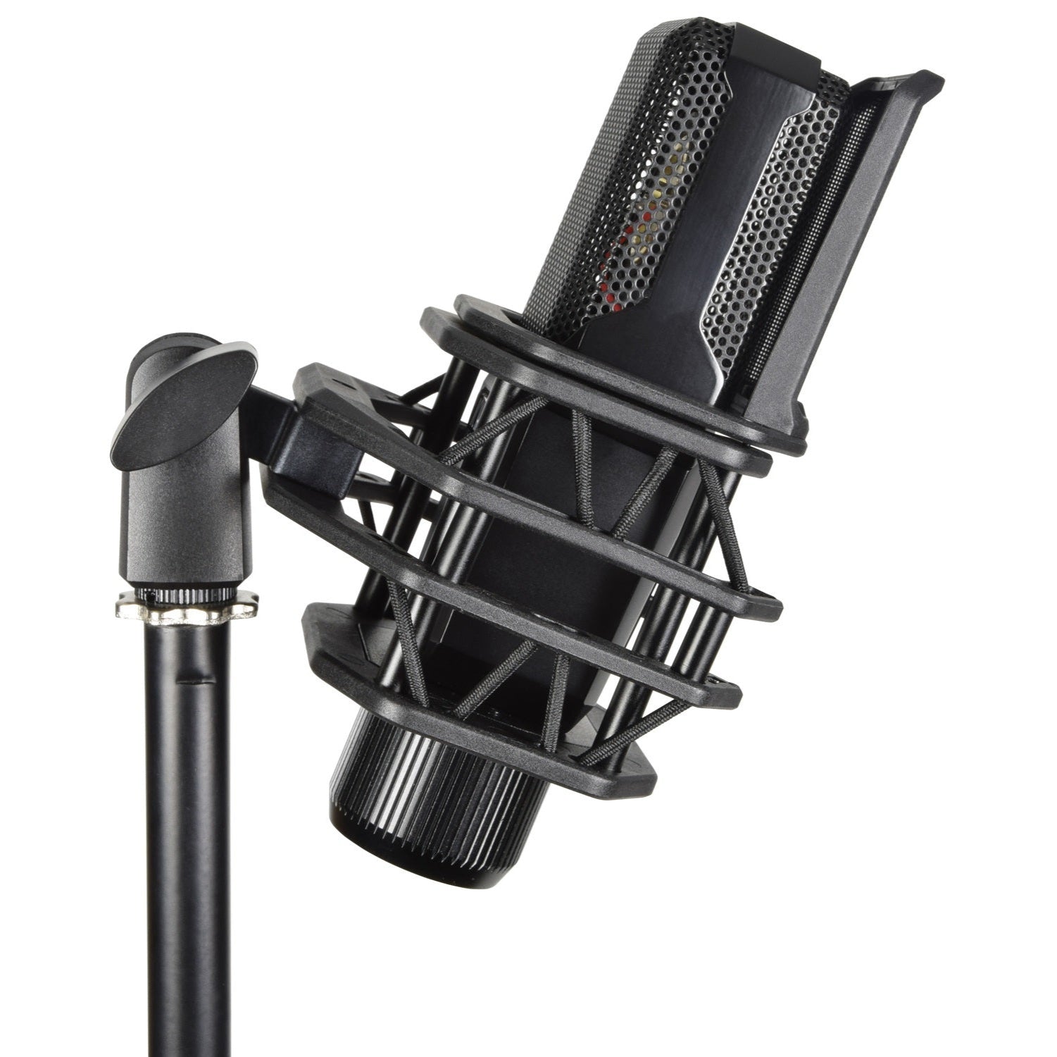 All metal construction with a bespoke shock-mount and magnetic pop-shield included, ready to mount to a standard microphone stand or boom arm.